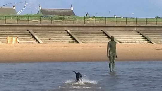 Just after this photo was taken, Ruby dropped her ball at the feet of the iron man hoping he would throw it for her! I wish I had been shooting a video instead of taking snaps!!